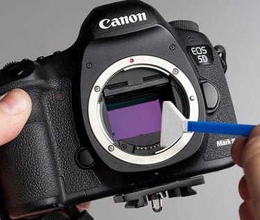 Le service de nettoyage et de vérification des capteurs comprend le nettoyage du capteur d'image, du miroir (le cas échéant), de l'écran de mise au point (le cas échéant), des surfaces LCD externes et du boîtier de l'appareil photo.